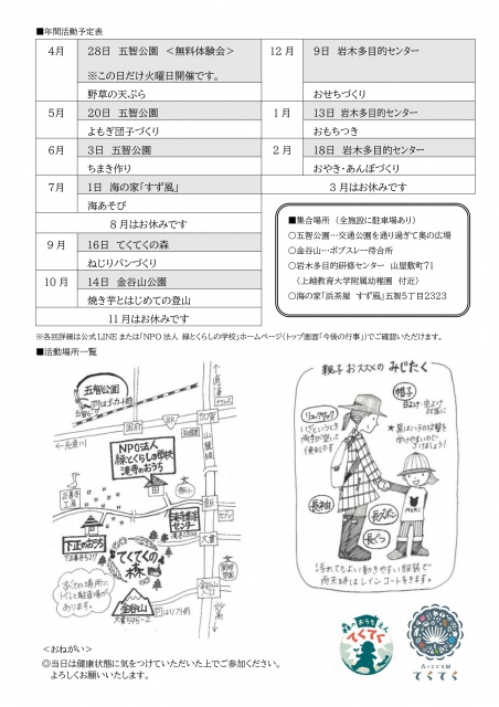 ※中止や延期の場合は、当日朝、このホームページ、SNS、公式ラインにてお知らせいたします。
