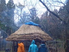 昨年お父さんたちに立ててもらったかまどの柱が雪で折れてしまいました。