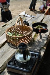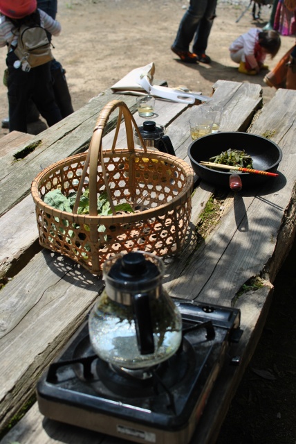 キャンプ場では笹の葉茶でみなさんをお出迎え。
