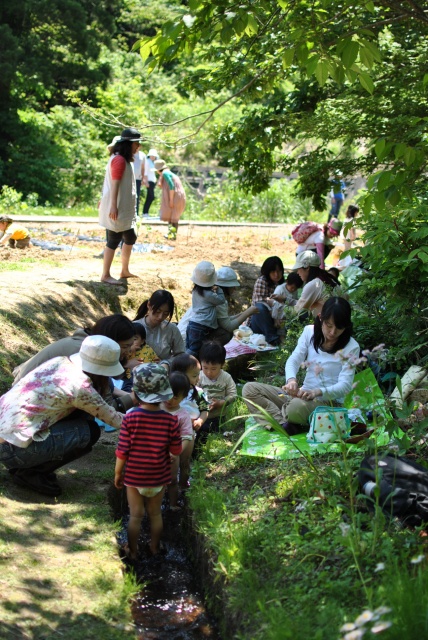 リヤカーにのって畑までお散歩。ちょっと遠出のお散歩となります。 みんなでサツマイモの苗を植えますよー。 畑でお昼を食べるので、調理はできませんがその代わりスタッフが 煮込んだ玉ねぎ丸ごとスープをいただきましょう。 子どもたちは畑の水路でミス遊びもはじまります。 楽しみな一日です。