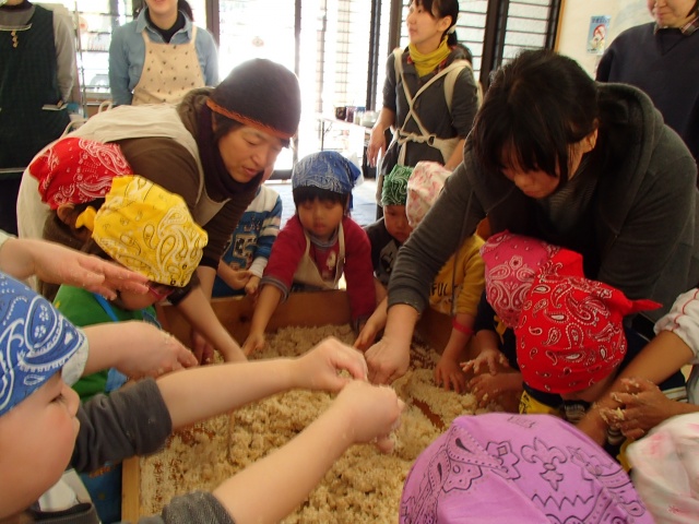 今年度、最後の土曜日トトロ組。 一年間、遊びにきてくれたみんなありがとう。 お母さんも一緒に お味噌をつくります。 また会おうね♪
