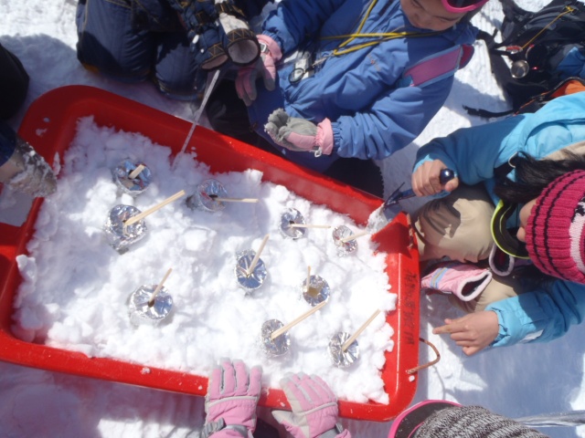出かける前に仕込んでおいたアイスキャンディも雪と塩の冷凍庫で出来上がり。キャンディで乾杯をして一日が終わります。