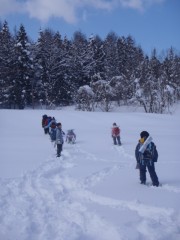 動物の足跡や木の冬芽の観察したり、ときには本物の動物に出会うことも。。。