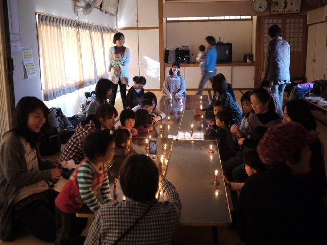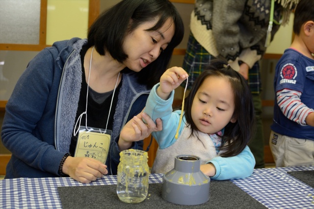滝寺集落センターでみつろうのキャンドルづくりを楽しみます。