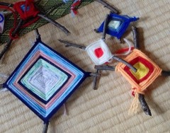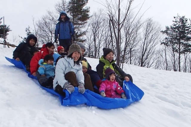 金谷山で、思いっきり雪遊び。 お昼からは、木の枝と毛糸でつくるおまもり 「ゴッドアイ」作りを楽しみましょう。