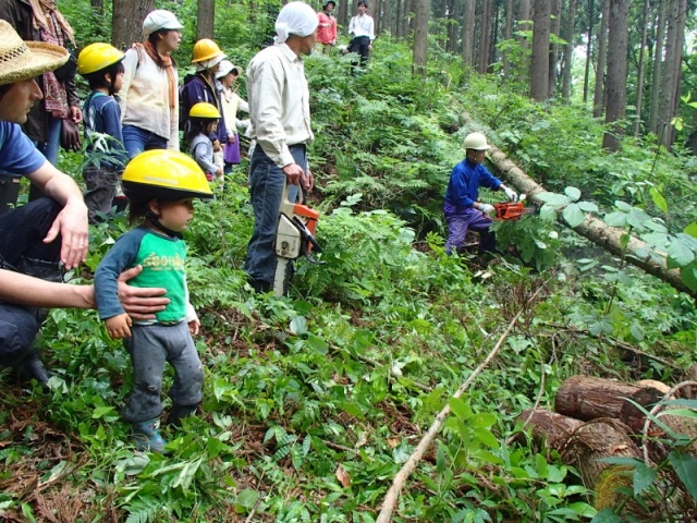 園長小菅は、チェーンソー片手に木こりを目指します。子育て中のお母さんたちもチェーンソー体験、そして薪割り体験をしちゃいますよー。自分たちの手で自分たちの暮らしをつくる原点。森でお待ちしています。